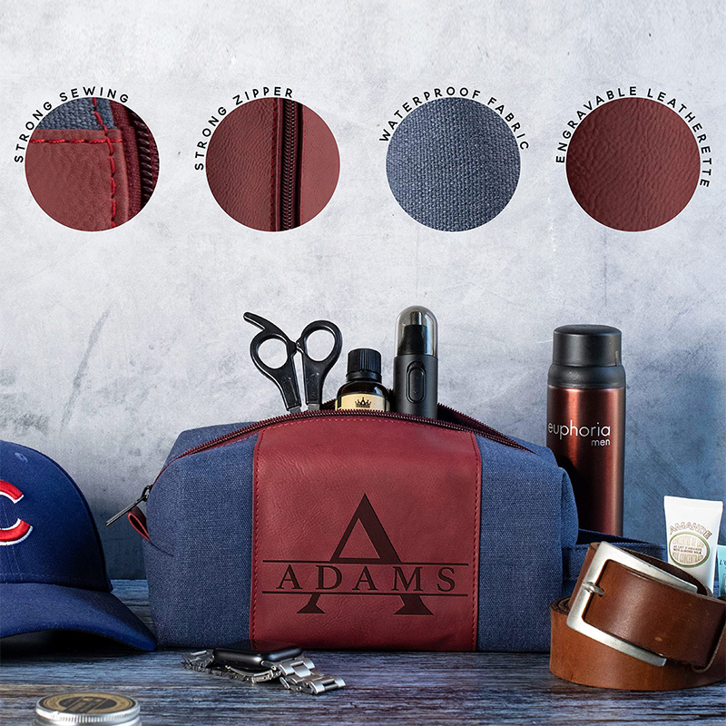 Bolso de tocador de cuero sintético laserable: organizador de cuero sintético de primera calidad para artículos esenciales de viaje. Cuenta con grabado láser de precisión para monogramas, logotipos o patrones decorativos personalizados. El interior resistente al agua con múltiples compartimentos mantiene los artículos de tocador organizados. Diseño compacto pero espacioso que se adapta a 3-5 botellas estándar. Ideal para kits de bienvenida de hoteles, regalos de viajes corporativos y obsequios personalizados para fiestas nupciales. Los diseños grabados mantienen la claridad después de un uso repetido. Incluye gancho para colgar para comodidad del baño. Descuentos por pedidos al por mayor para colaboraciones con marcas de lujo. Cumple con las regulaciones de líquidos para equipaje de mano de la TSA.